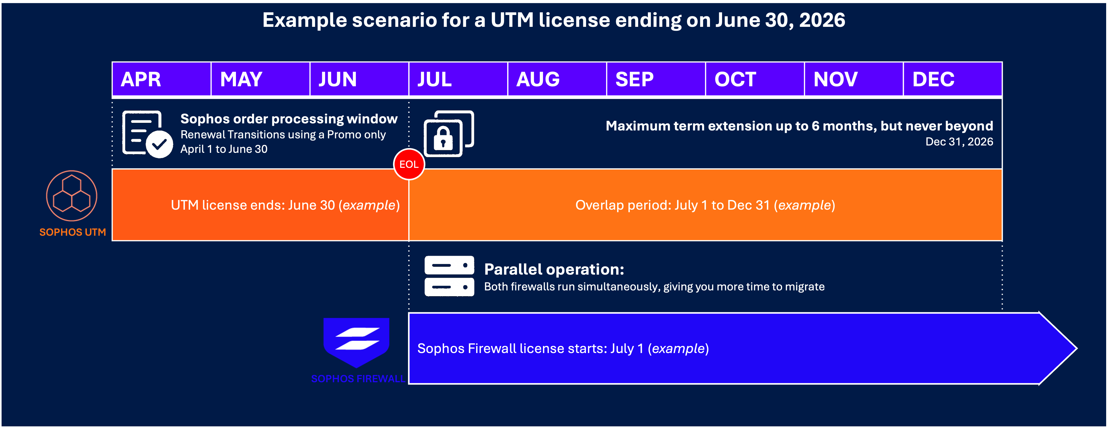 This offer does not change the EOL date. It simply unlocks exclusive access to extended support while both firewalls run in parallel.